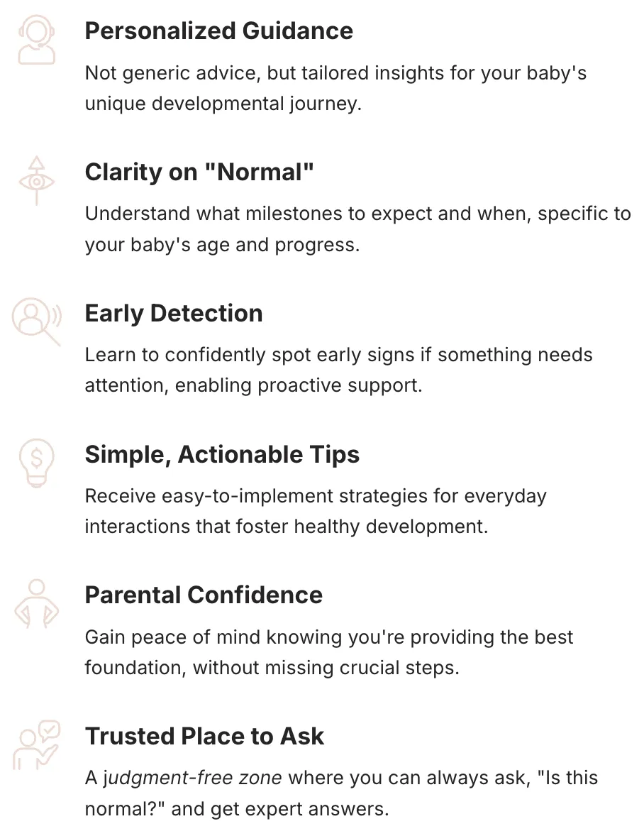 Confident Beginnings gives specialist-backed virtual guidance to catch red flags early, understand what's actually normal, and stop second-guessing every milestone.